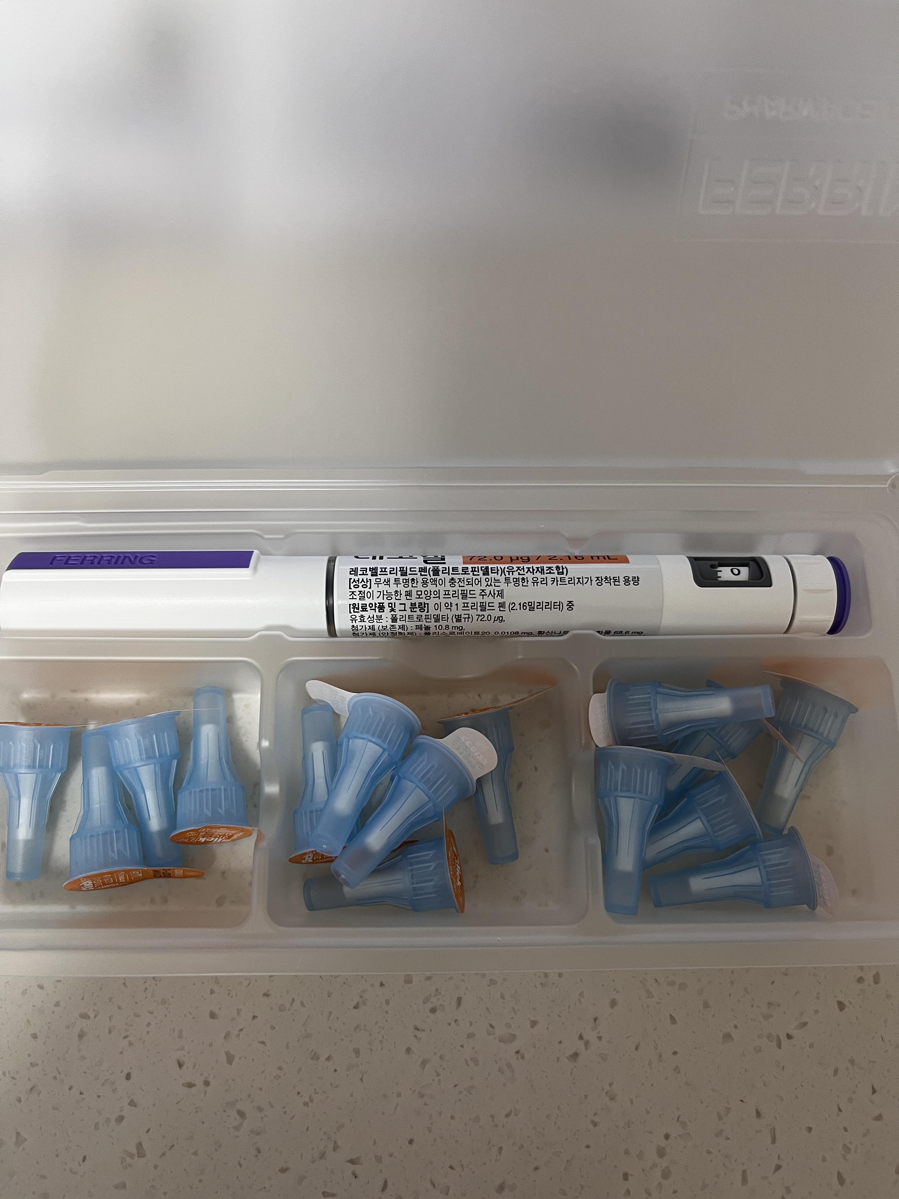 레코벨프리필드펜, 퍼고베리스주 이렇게 2개를 3일치 처방 받았습니다.