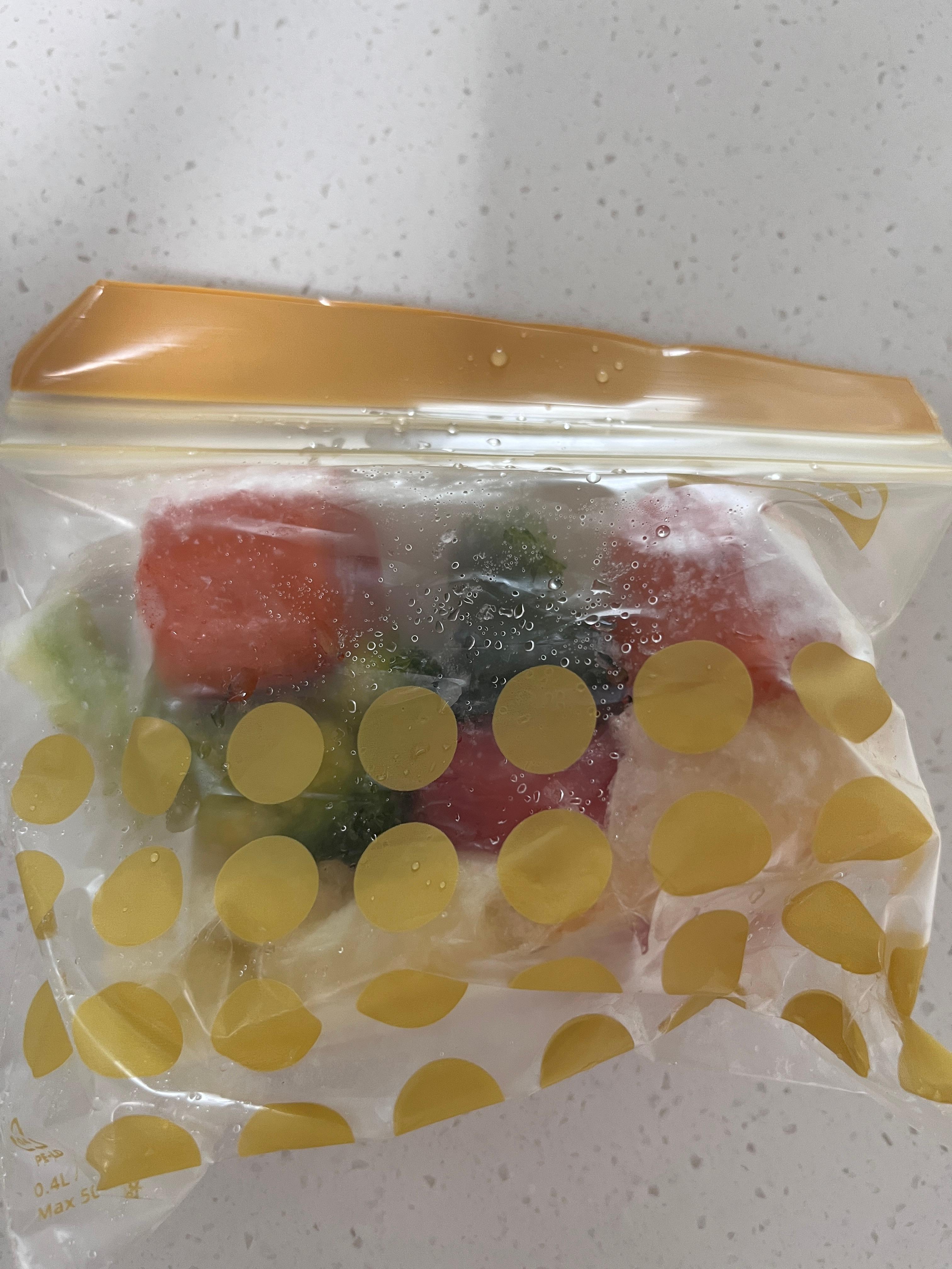 1. 우선 야채는 미리 1~2주 정도 먹을 양을 미리 찐 후에 1인분씩 지퍼백에 냉동해둡니다.